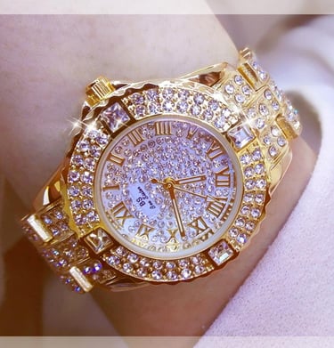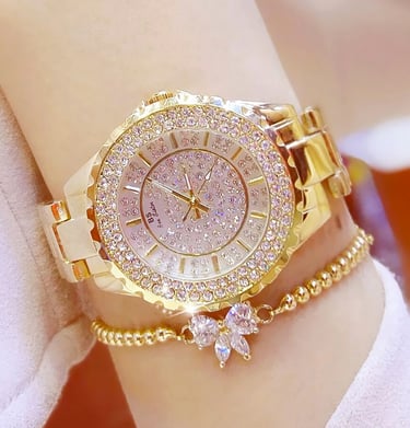 The brand name shines with a metallic gold aura, surrounded by swirling gold dust and soft shimmering reflections.